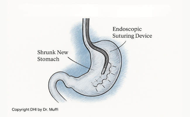 Endoscopic Sleeve Gastroplasty (ESG) is a minimally invasive, non-surgical weight loss procedure that reduces stomach size using internal sutures placed via an endoscope inserted through the mouth—no external cuts or tissue removal involved. It limits food intake and delays gastric emptying, helping you feel full longer. ESG is reversible, performed under anesthesia, and typically completed within a few hours, with same-day discharge. It’s an ideal option for individuals with a lower BMI seeking long-term weight management with behavioral support.